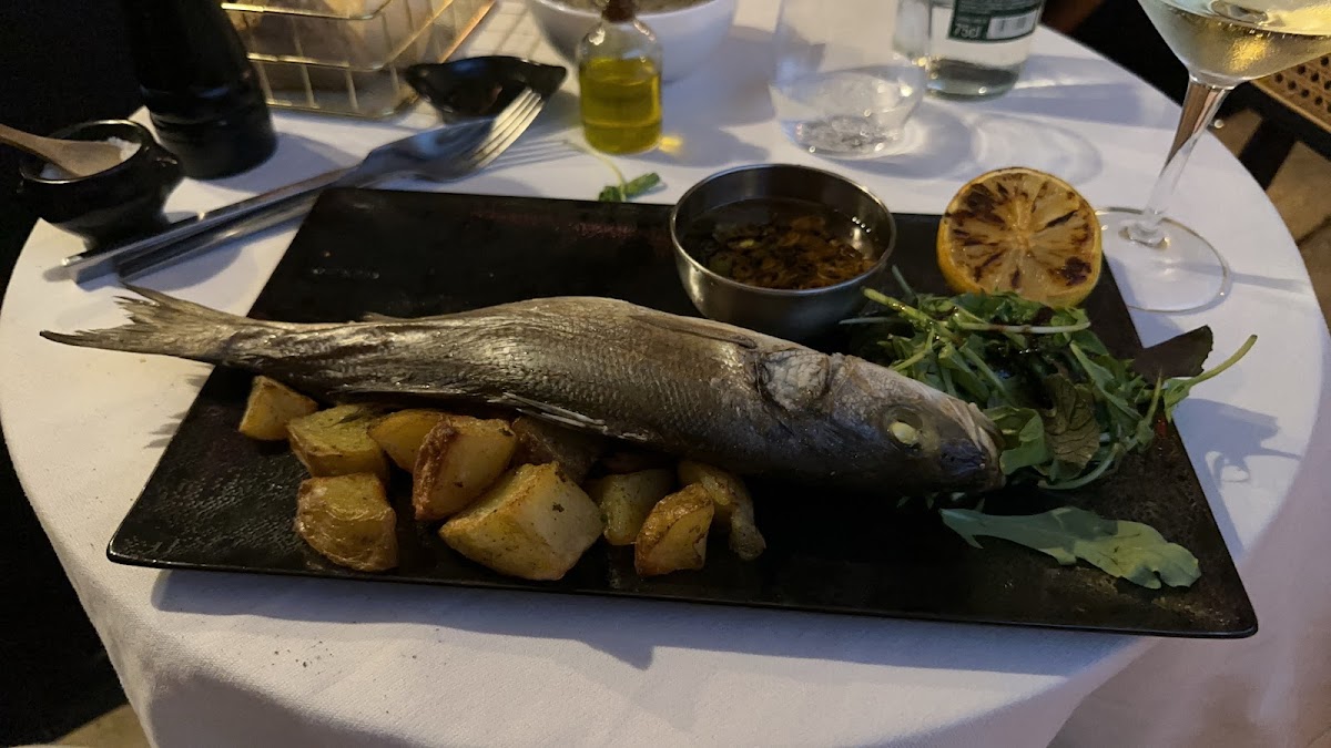 Great place for evening meal overlooking the port. The photos make it look like the road runs past it but don’t let that put you off - only one or two cars go past, you have an uninterrupted view of the port. We had the sea bass which was delicious but the sweet potato side was unusual and we left that.